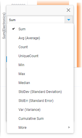 El usuario especifica la agregación que desea mostrar en el selector de columnas del eje.