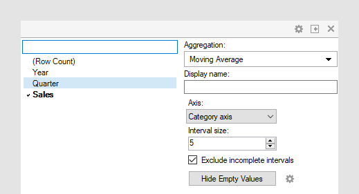 | Отображаемое имя | При желании можно указать другое отображаемое имя вместо «Скользящее среднее ([имя столбца])» по умолчанию. |
