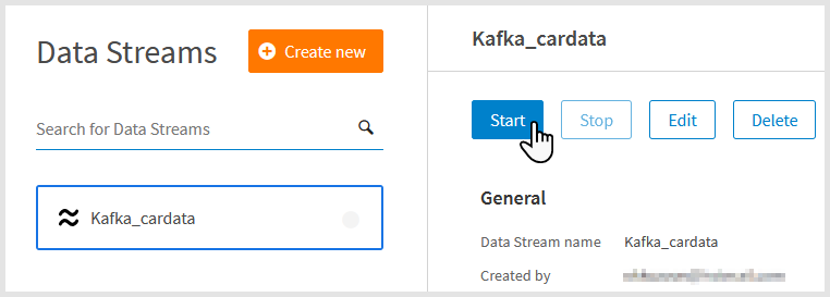 Note: Not all users have permission to start and stop streams in TIBCO Cloud Data Streams. It depends on your user role.