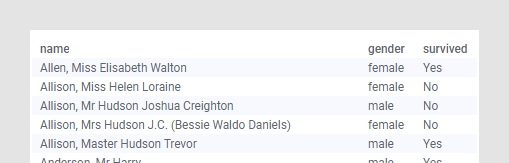 다음 예에서는 타이타닉호 재난의 생존 통계가 사용됩니다.