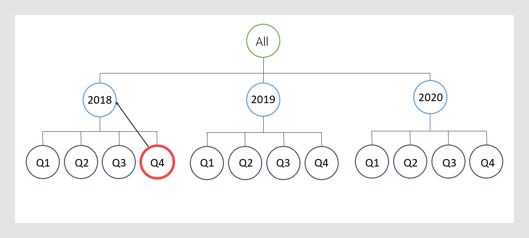 No nó atual, você navega um nível acima na hierarquia. Se os dados não forem hierárquicos ou se o nó atual estiver no nível superior, o método Parent() funcionará da mesma maneira que o método All().