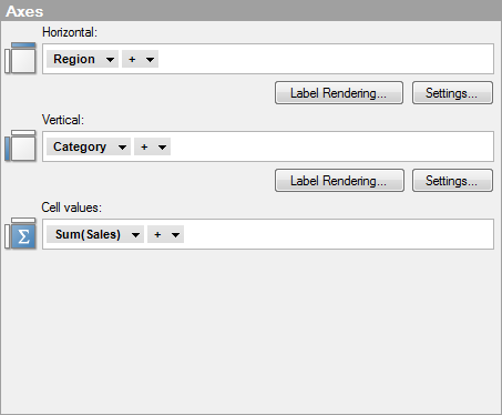 Opens the Advanced Settings dialog, where you can change the category mode to determine which combinations of categories to show. (In a cross table, the axes are always categorical and the scale mode cannot be changed.)