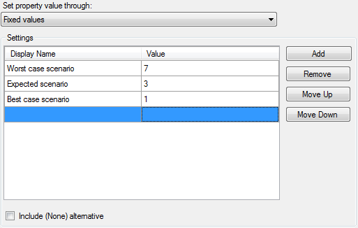 Displays a list of values that you define yourself. The display name used in the control can be different from the actual value of the alternative.