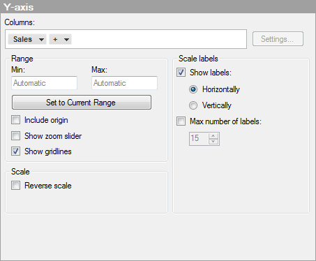Select the check box to specify a maximum number of scale labels to be shown. Limiting the number of labels can improve readability on axis scales with many values. |