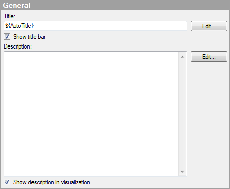 Opens the Edit Description dialog where you can add properties to the description so that it changes with a selection. For example, you may want the description to change depending on the columns or expressions you select on the axes. See Titles and Descriptions Overview for some examples.