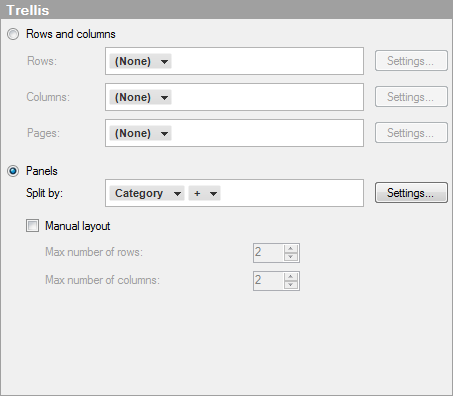 A column with trellis panels will be created for each value in the selected column or hierarchy. |