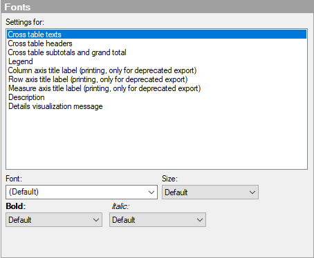 Cross Table Properties – Fonts