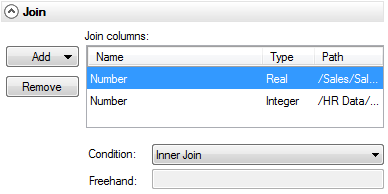 You can also specify your own join definition by typing directly in the freehand field. See Freehand Joins for more information.