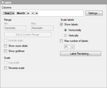 Select the check box to specify a maximum number of scale labels to be shown. Limiting the number of labels can improve readability on axis scales with many values. |