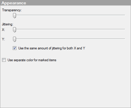 Jittering is an option that displaces the visualization items randomly in the display window, thereby making overlapping markers visible.