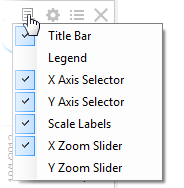 By clicking Show/hide controls on the title bar of a visualization you can turn on or off zoom sliders for the axes in a visualization. (The icons on the title bar are only shown when hovering with the mouse pointer over the visualization.)