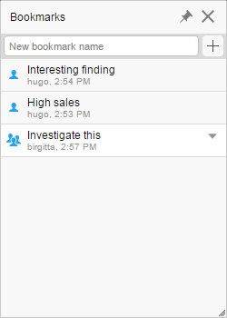 Al realizar análisis interactivos, es posible que desee capturar vistas de análisis con resultados interesantes para poder consultarlas más tarde. Esto es posible gracias a los marcadores.