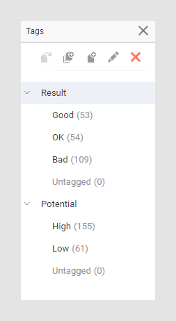 주: 위에 표시된 대로 데이터 테이블 내에서 둘 이상의 태그 컬렉션을 만들 수 있습니다(태그 컬렉션 'Result' 및 'Potential').