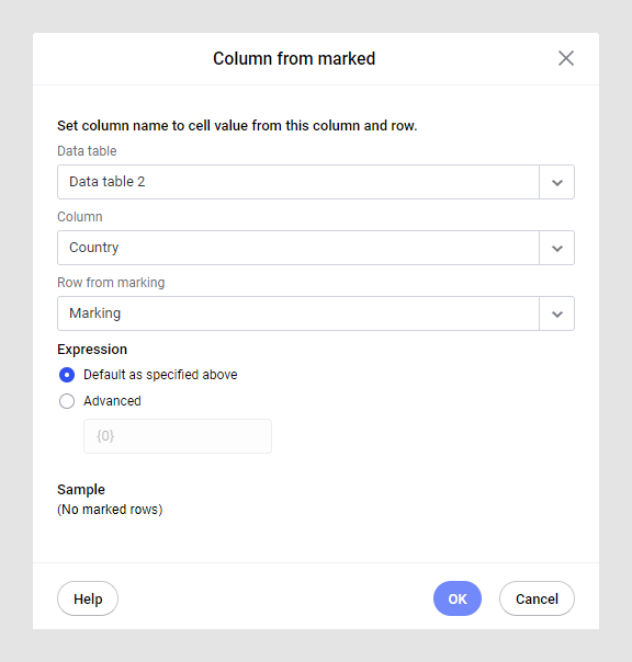 As duas visualizações podem ser construídas em tabelas de dados completamente não relacionadas. No entanto, é um pré-requisito que na tabela de dados onde você marca os dados, os valores das células em uma das colunas de dados devem ser idênticos aos nomes das colunas na outra tabela de dados.