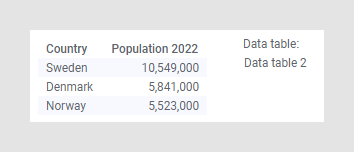 A tabela de dados 2 lista a população de 2022 de cada país, e a camada de recursos no mapa gráfico reflete os números da população.