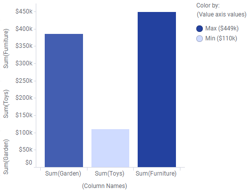 下面的条形图显示了商店中三个不同部门的销售额总和。这些数据从三列中获取,即在值轴上选定了多列。