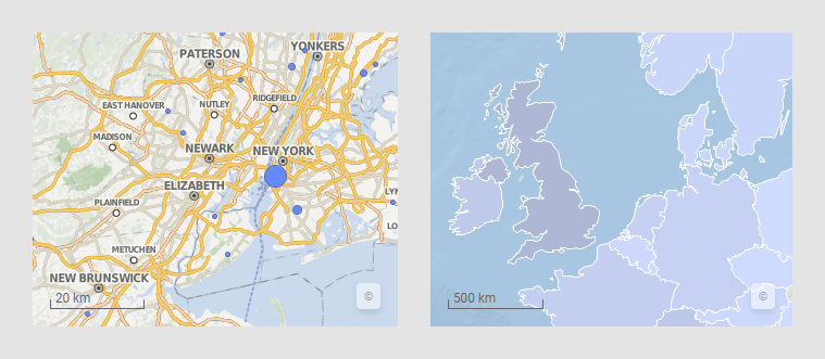 缩放和交互控件位于图表右上角。要选择将在地图中显示的控件,请打开“地图属性”的“外观”部分。 - 修复地理编码问题