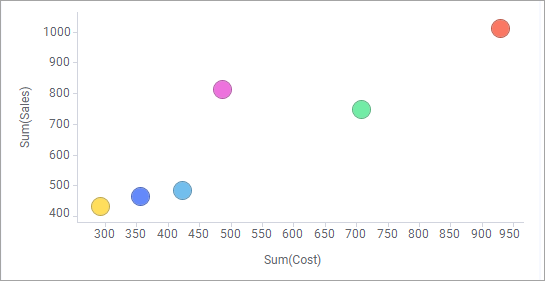 The markers now show the Sum of Sales for each product, as you can see on the axis selector for the Y-axis.