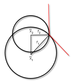 Il raggio del cerchio, ri, viene calcolato come segue:
