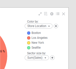 You use the Color by axis to divide the pie into sectors, and the Sector size by axis to specify what data the sectors' relative sizes should reflect.