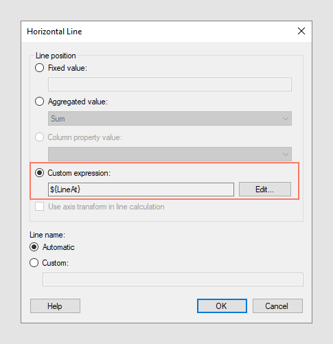 Utilizzo di un'espressione di proprietà per definire una linea che mostra diverse misure statistiche