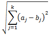 Die Euklidische Distanz zwischen zwei Punkten a und b mit k Dimensionen berechnet sich wie folgt: