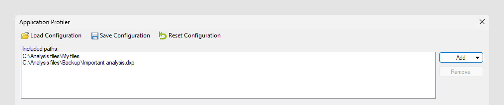 要访问 Application Profiler,请转到,然后选择 Application Profiler。该工具可让您自定义路径、选项和脚本,并将它们作为配置保存到本地计算机,以方便日后随时重新加载到该工具。