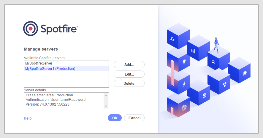 | 添加 | 打开登录对话框的“添加服务器”视图,从中可以向列表添加新的 Spotfire 服务器。 |