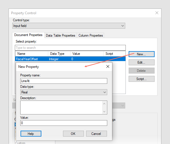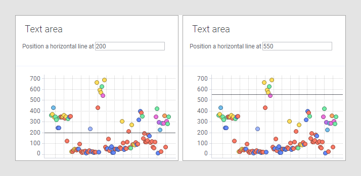 The first example describes how the position of a horizontal line in a scatter plot can be changed by anyone using a property control in a text area.