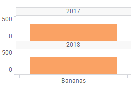 The visualization shows the two product types that sold best during the years. In this example, the top two bars were the Bananas sales in 2017 and 2018. |