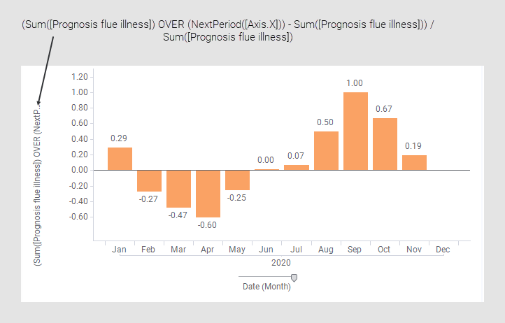 Supposons que vous vouliez que les prévisions montrent l'évolution relative de la maladie d'un mois à l'autre. Vous pouvez ensuite appliquer l'expression suivante sur l'axe des valeurs.
