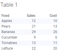 In this example, a data table containing information about the cost and