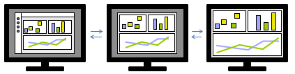To get maximum display area for the canvas, you can hide the top menu bar, and the authoring bar to the left. The padding around the canvas will also be removed. In addition, it is possible to enter full screen mode to make even more space available for the actual visualizations. - Modifying responsive layouts