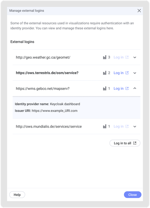 used to log in to a WMS server and whose map data is used in visualizations.
