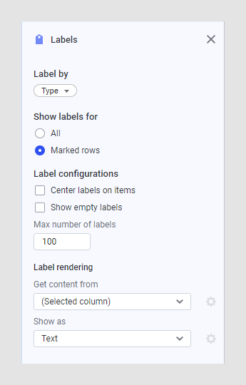 Specific visualization label settings.