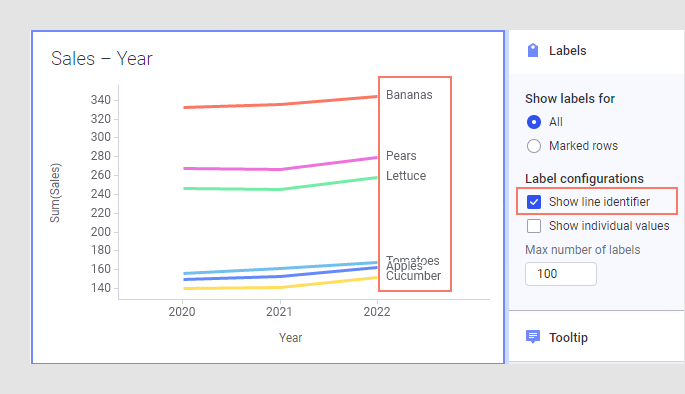 You can show labels for different items within the visualization.
