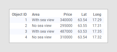 Assume you wish to compare the average price of houses with a sea view, to houses without. Geocoding is not an option, because no column contains geographic names.