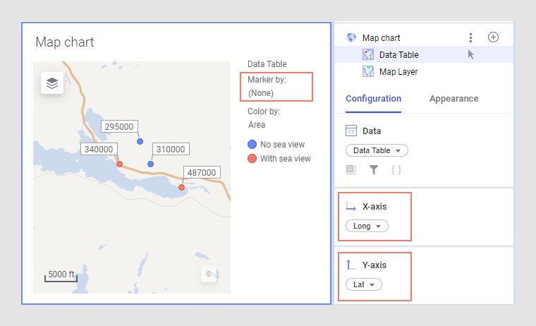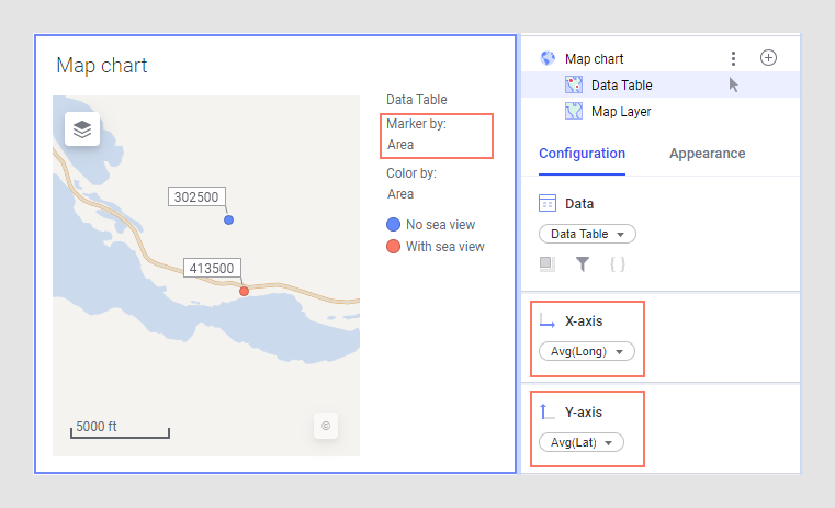 If geographic coordinates are available in the data loaded into a marker layer in the map chart, each marker is positioned at its coordinates. But you might not be interested in separate markers; instead an aggregated value representing multiple markers might be of interest.