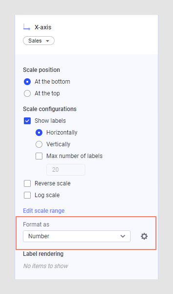 However, you can also specify a particular formatting on an axis in a certain visualization. In this case, the formatting only affects the selected axis.