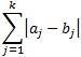 The City block distance between two points, a and b, with k dimensions is calculated as: