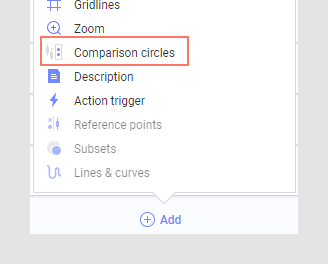 The drawing of comparison circles is a way to show whether the mean values for various categories (boxes in the box plot) are significantly different from each other. The circles are drawn with their centers at the mean value for the box to which it corresponds. You can add comparison circles from the visualization properties panel in any client.
