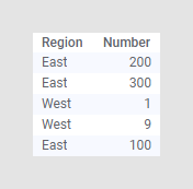 Totals are calculated using the same aggregation or expression as is used for calculating the cell values. The calculation is not based on the aggregated values shown in the cross table cells; it is by default based on the underlying data table rows. For example, if 'Average' is used as aggregation method for the cell values, the grand total average of the column is not the average of the cell values; it is the average of all the underlying data rows. This is exemplified below, where a simple data table is visualized by a cross table: