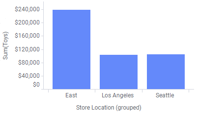 The bar chart below shows sales of toys at four different store locations. Assume you are interested in presenting the total sales at the US east coast, and therefore the east store locations should form a group (Boston and New York).