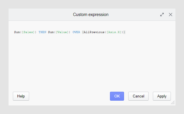 The Custom expression dialog will open, where you can view and edit the expression.