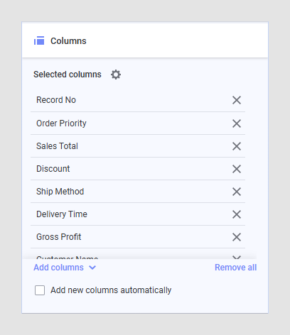 Available columns list, select the columns you