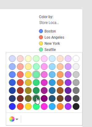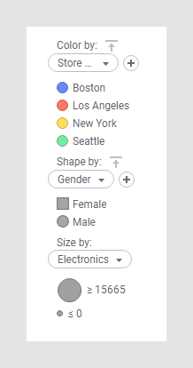 Select Remove from a column selector to remove any selections made. For example, removing all columns from the Size by option in a scatter plot and setting it to (None) will make all markers be of the same size instead of letting the size depend on a certain column.