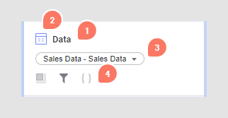 - Column selector or data table selector (some cards only) - A column selector lets you switch the column used in the setting. In the Data card, the selector switches the data table.