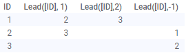 Lead 함수는 데이터가 로드된 순서에 따라 데이터 적용됩니다. 즉, 함수는 시각화의 정렬을 고려하지 않으며, 데이터의 변경(예: 다시 로드 도중)으로 여러 행의 값이 달라질 수 있습니다. |