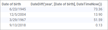 DateTimeNow() 函数可返回当前系统时间。例如,如果人员的出生日期已知,则可以将此函数与上述的 DateDiff 函数结合使用来计算这些人员的当前年龄。
