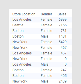 数据表包含不同门店按性别拆分的销售额。